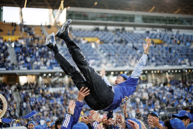 울산문수축구경기장/ K리그1/ 파이널A/ 울산HDFC vs 수원FC/ 울산 김판곤 감독/ 우승 행가레/ 우승 세레머니/ 사진 김재훈