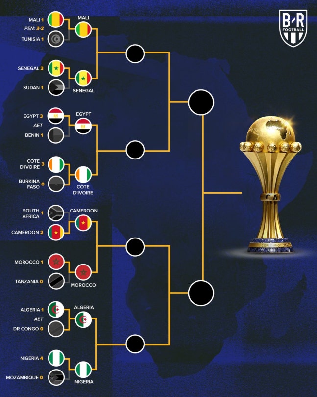 모로코에서 열리고 있는 아프리카 네이션스컵은 7일(한국시간) 알제리-콩고민주공화국, 코트디부아르-부르키나파소의 16강전을 끝으로 8강 대진이 확정됐다. 대진표상 8강은 말리(FIFA 랭킹 53위)-세네갈(19위), 이집트(35위)-코트디부아르(42위), 카메룬(57위)-모로코(11위), 알제리(34위)-나이지리아(38위)의 맞대결로 각각 펼쳐진다.