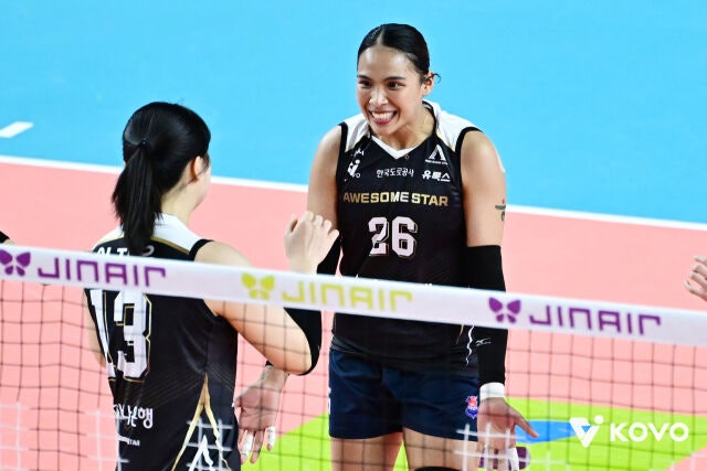 한국도로공사의 태국 출신 타나차가 김천에서 반가운 얼굴을 만났다. 지난 7일 김천실내체육관에는 타나차의 태국 친구가 등장했다. 이름은 제임스 루사미카에다. 제임스는 넷플릭스 예능 ‘피지컬: 아시아’ 출연진이기도 하다. 타나차와 인연도 깊다.