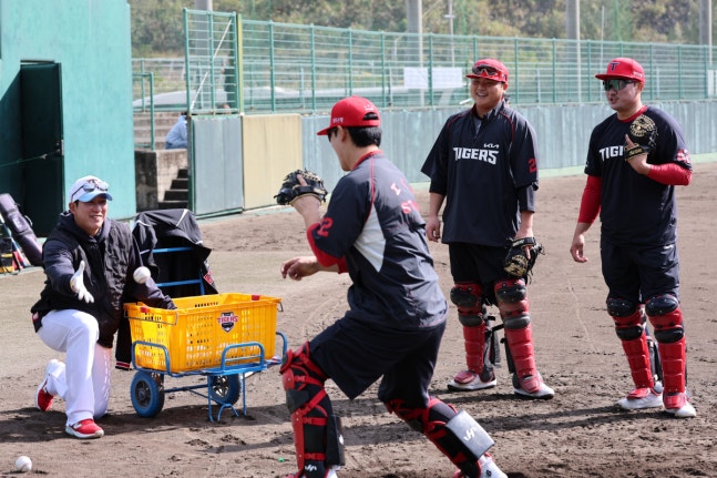 일본 아마미오시마 1차 스프링캠프에서 포수조 훈련을 진행하고 있다. 사진제공=KIA 타이거즈