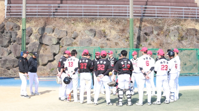 울산 웨일즈는 22일 서귀포 강창학야구장에서 스프링캠프 두 번째 청백전을 진행했다. 선수들은 울산팀과 웨일즈팀으로 나눠 경기에 나섰다.