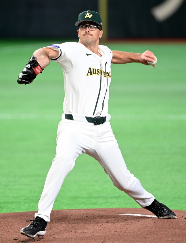 5일 일본 도쿄돔에서 열린 WBC(월드베이스볼클래식) 호주와 대만의 경기. 호주 선발투수 알렉산더 웰스가 역투하고 있다.