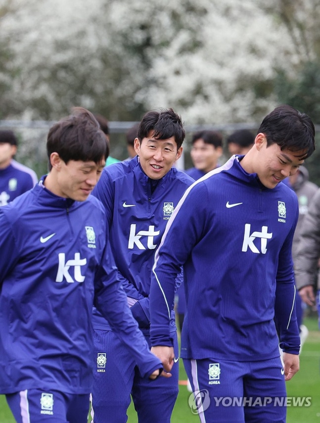 (밀턴킨스[영국]=연합뉴스) 최재구 기자 = 코트디부아르전을 앞둔 한국 축구 국가대표팀의 손흥민, 이재성, 오현규 등이 24일(현지시간) 영국 런던 북서쪽 밀턴킨스 훈련장으로 들어서고 있다. 2026.3.25 [email protected]