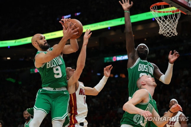 (서울=연합뉴스) 오명언 기자 = 미국프로농구(NBA) 보스턴 셀틱스가 1쿼터 12분 동안에만 53점을 몰아치는 매서운 화력을 선보이며 마이애미 히트를 완파했다.