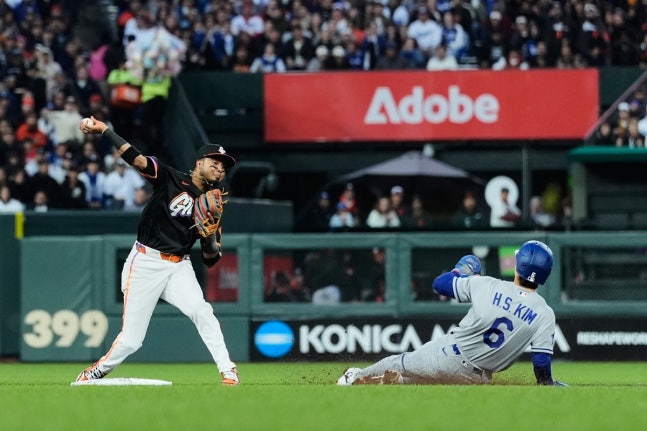 (엑스포츠뉴스 김근한 기자) 2026년 미국 메이저리그(MLB)에서 열린 첫 코리안 더비 승자는 샌프란시스코 자이언츠 이정후였다. LA 다저스 김혜성은 멀티 출루에도 1회 치명적인 송구 실책 속에 팀 패배를 맛봤다.