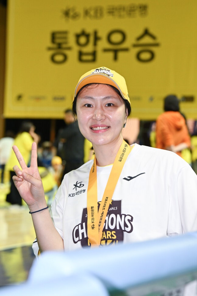 염윤아는 앞서 KB스타즈의 두 차례 통합 우승을 함께한 선수다. 그리고 마지막을 세 번째 통합 우승으로 장식했다.