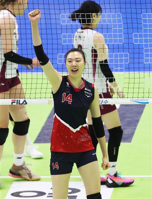 梁, 블로킹 1위… 리그 1위 이점 이윤정·정윤주 신인왕 ‘2파전&rsq…