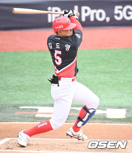 [OSEN=수원,박준형 기자]1회초 KIA 선두타자 김도영이 안타를 날리고 있다. 2022.03.17 [OS…