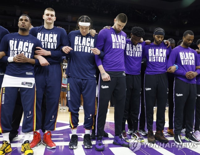 침묵시위 하는 새크라멘토 선수들 [EPA=연합뉴스] (서울=연합뉴스) 안홍석 기자 = 미국프로농구(NBA) …