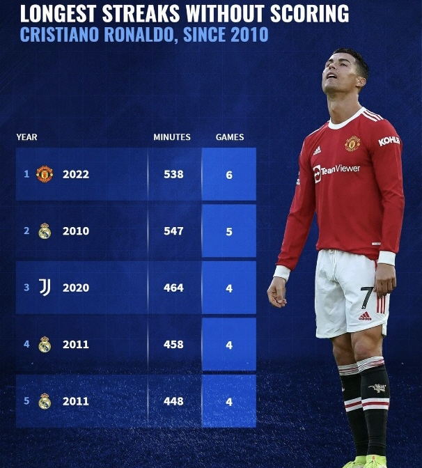 '이런 골가뭄이 얼마만이야' 6경기 538분 최장 무득점 행진 맨유 호날두가 이상하다