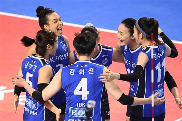 [프로배구] '월척' GS칼텍스 잡고 5위 넘본다 ▲여자프로배구 IBK기업은행 선수들 ⓒ IB…