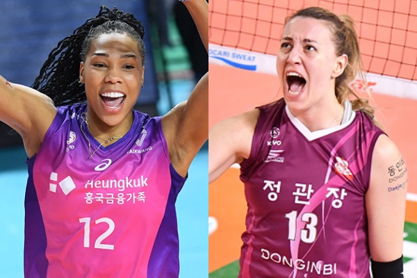 흥국생명 캣벨(왼쪽)과 KGC인삼공사 옐레나. (C)KOVO 흥국생명과 KGC인삼공사가 5라운드 맞대결에 나…