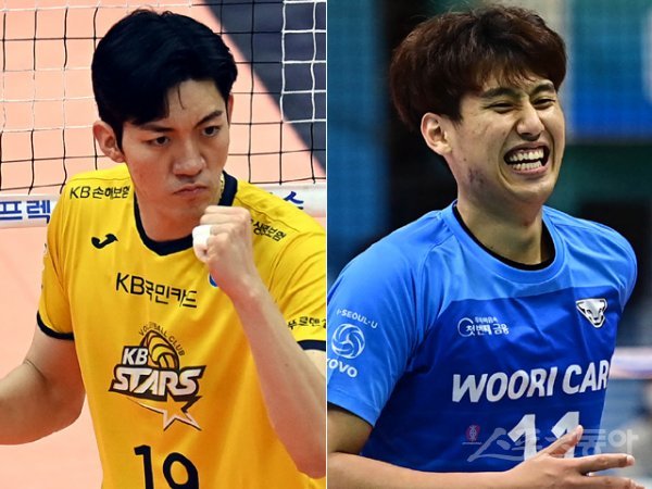 김재휘(왼쪽), 한성정. 스포츠동아DB 23일 KB손해보험은 OK금융그룹에 풀세트 접전 끝에 패했다. 19일…