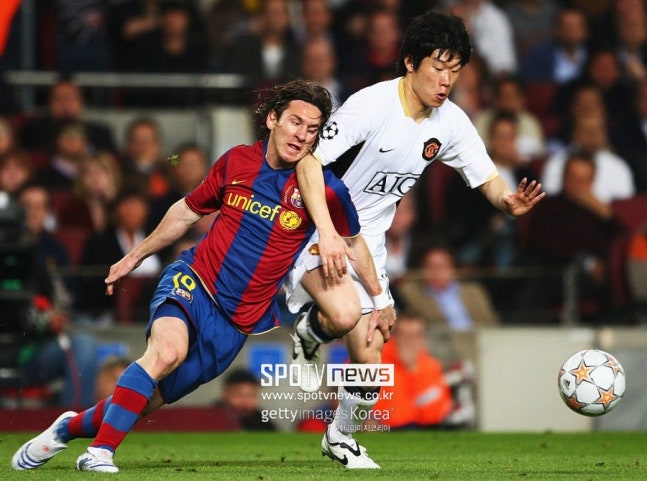 ▲ 리오넬 메시(전 바르셀로나)와 박지성(전 맨체스터 유나이티드) [스포티비뉴스=서재원 기자] 박지성은 안드…