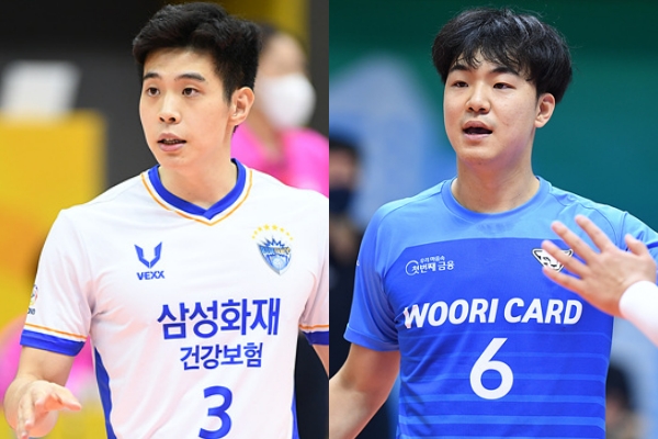 삼성화재 황승빈(왼쪽)과 우리카드 하승우. (C)KOVO 삼성화재와 우리카드가 1라운드 맞대결에 나선다. 두…