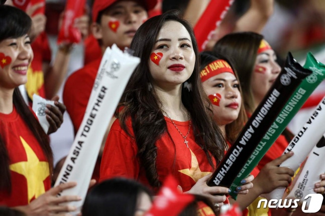 11월 11일 하노이에서 베트남-일본 맞대결 베트남 축구 팬들 © AFP=뉴스1 (서울=뉴스1) 안…