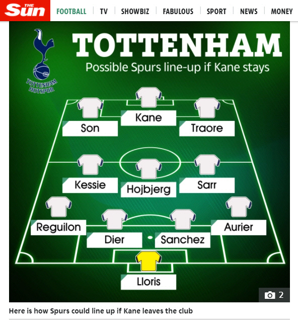 [스포츠경향] 토트넘 예상 라인업. ‘더 선’ 캡처 해리 케인(28)의 잔류가 확정된 …