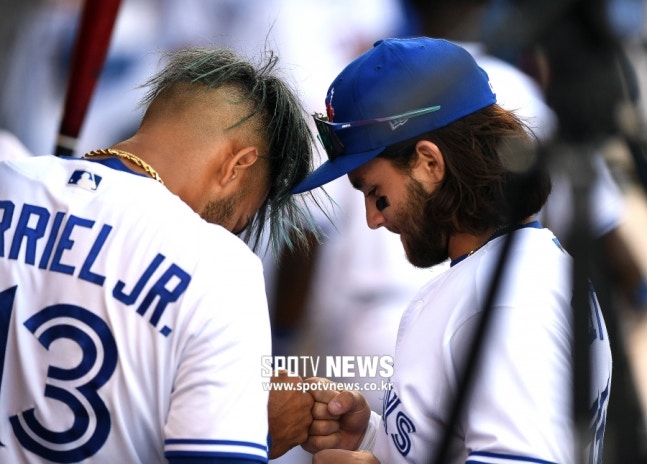 ▲ 올 시즌 토론토에서 가장 불안한 수비를 보여주고 있는 구리엘 주니어(왼쪽)와 비솃 ⓒ조미예 특파원 [스포…