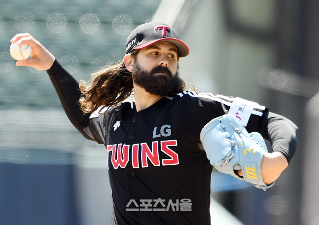 LG 켈리가 5월5일 잠실구장에서 열린 2021 KBO리그 두산과 LG의 경기에 선발 등판해 힘차게 공을 던…