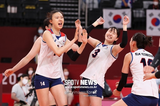 ▲ 양효진(앞줄 맨 왼쪽) [스포티비뉴스=도쿄, 정형근 기자] 열쇠는 중앙이다. 양효진(32, 현대건설) 김…