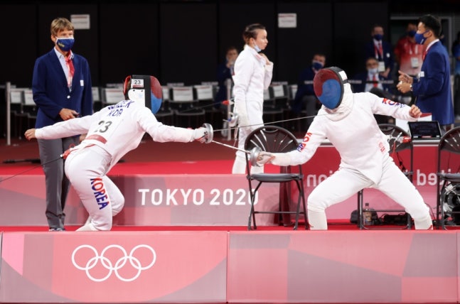 ▲ 김세희와 김선우 ⓒ연합뉴스 ▲ 정진화와 전웅태 ⓒ연합뉴스 [스포티비뉴스=이민재 기자] 펜싱, 수영, 승마…