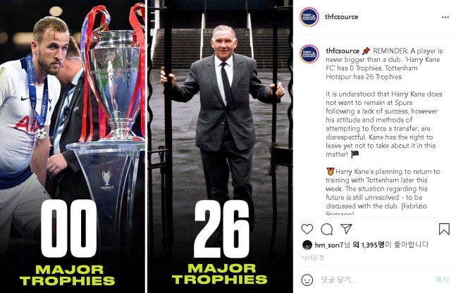 케인 비판글에 좋아요 누른 손흥민...진심 or 우연?