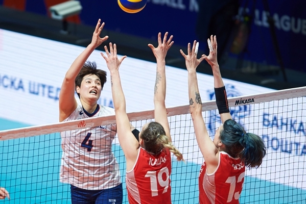대표팀에서 활약하는 김희진. (C)FIVB [스포츠타임스=홍성욱 기자] 여자배구대표팀 라이트 김희진(IBK기…