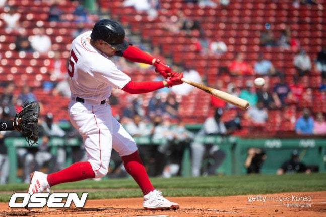[사진]보스턴의 키케 에르난데스가 20일(한국시간) 펜웨이 파크에서 벌어진 시카고 화이트삭스와의 경기 1회 …