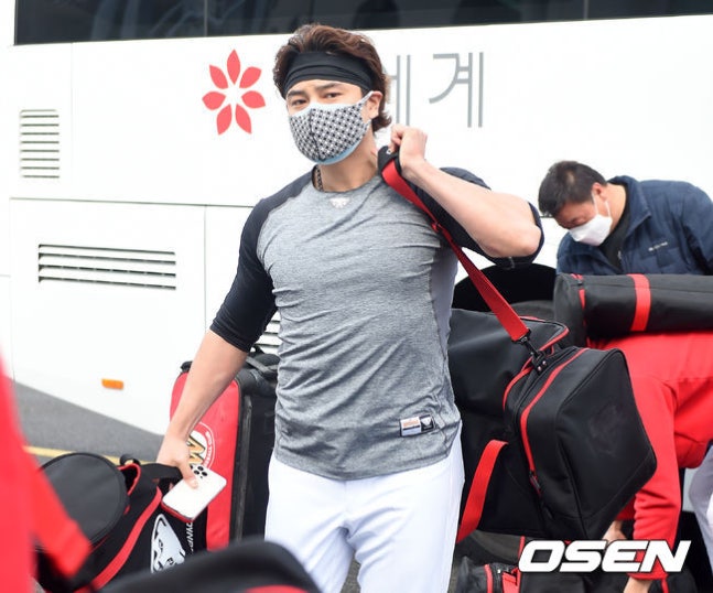 [OSEN=울산, 곽영래 기자] SSG 추신수가 구단 버스에서 내려 개인 장비를 챙겨서 클럽하우스로 이동하고…