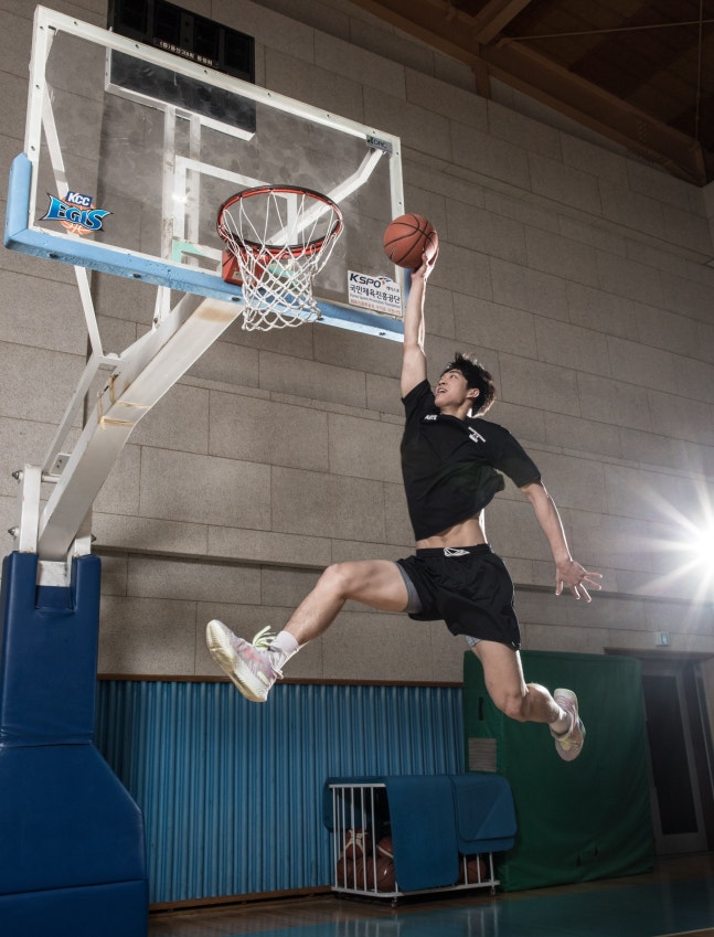 농구 국가대표 여준석이 지난 4일 용산고 체육관에서 덩크슛을 하고 있다. /고운호 기자 농구의 꽃이라는 덩크…