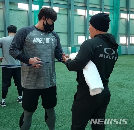 [서울=뉴시스] 류현진(토론토)이 제주도에서 개인 훈련을 하는 모습.(사진=에이스펙코퍼레이션 인스타그램 캡처…