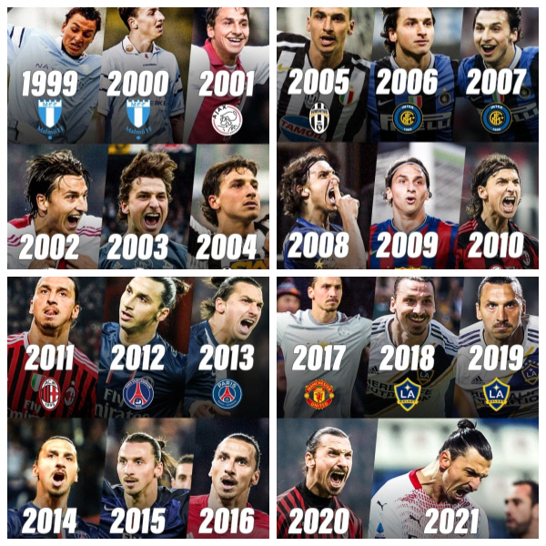 축구매체 433이 23년간 매해 득점한 즐라탄 이브라히모비치의 모습을 사진으로 정리했다. 1999년부터 20…