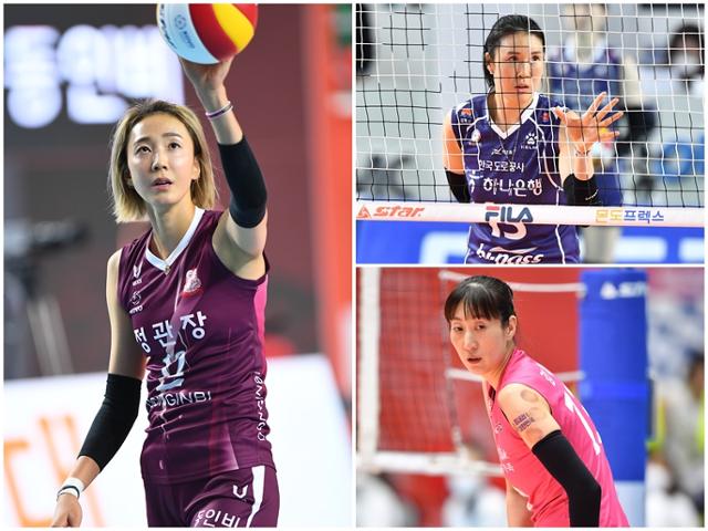 한송이(왼쪽 사진)와 정대영(오른쪽 위) 김세영 등 V리그 여자부에서 '언니'들의 활약이 올시…