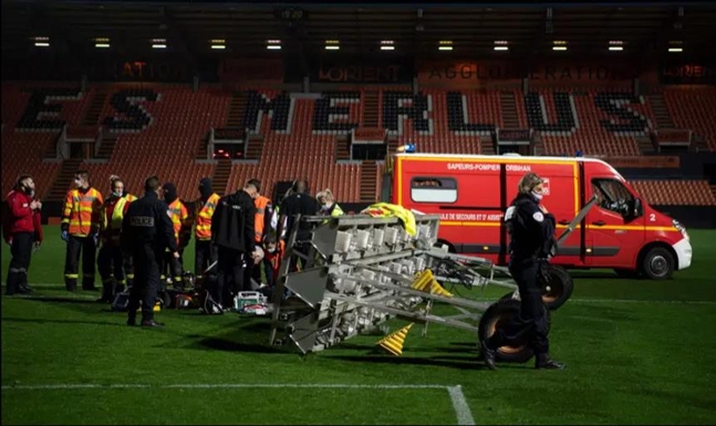 프랑스 리그앙에서 경기 종료 후 조명이 추락해 자원봉사자가 사망했다./사진=영국 더선 캡처 프랑스 리그앙(1…