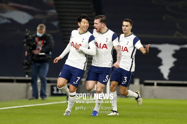 ▲ 피에르-에밀 호이비에르(가운데)와 손흥민(왼쪽). [스포티비뉴스=맹봉주 기자] 프리미어리그 1위와 2위가…