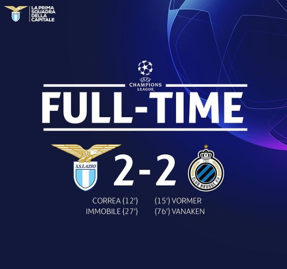 [UCL리뷰]라치오, 클럽 브뤼헤와 2대2 챔스 16강행
