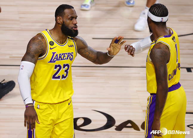 [스타뉴스 이원희 기자] 르브론 제임스(왼쪽)와 칼드웰-포프. /사진=AFPBBNews=뉴스1 슈퍼스타 르브…