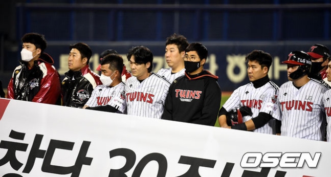 [OSEN=잠실, 최규한 기자] 홈 최종전을 마친 LG 선수들이 도열해 팬들에게 인사를 준비하고 있다. [O…