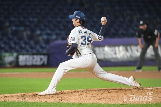 [일간스포츠 배중현] 3일 열린 삼성과의 더블헤더 2차전에 선발 등판해 쾌투한 박정수. NC 제공 NC 오른…
