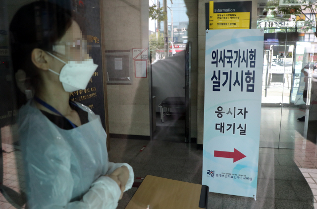 2021년도 제85회 의사국가시험 실기시험일이던 지난 9일 서울 광진구 한국보건의료인국가시험원에서 관계자가 …