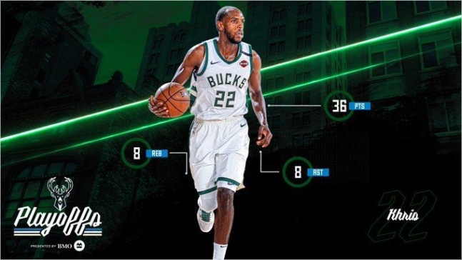 [CBS노컷뉴스 김동욱 기자] 크리스 미들턴. (사진=밀워키 벅스 트위터) 2쿼터 종료 스코어는 50대48,…