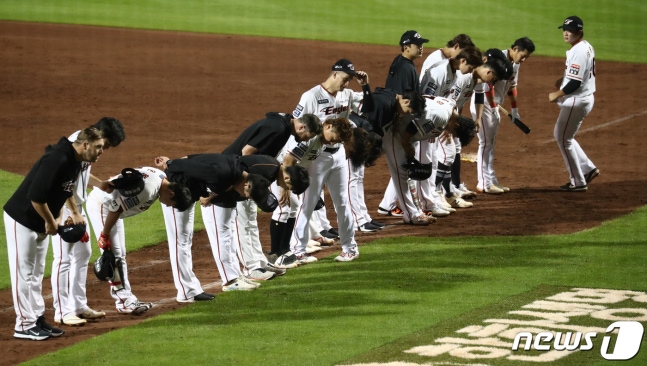 경기를 마친 한화 이글스 선수들이 관중들에게 인사하고 있다. /뉴스1 © News1 김기태 기자 (…