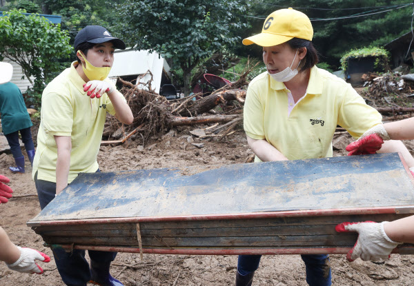 "티셔츠가 왜 이리 깨끗?" 심상정 수해복구 인증샷 구설